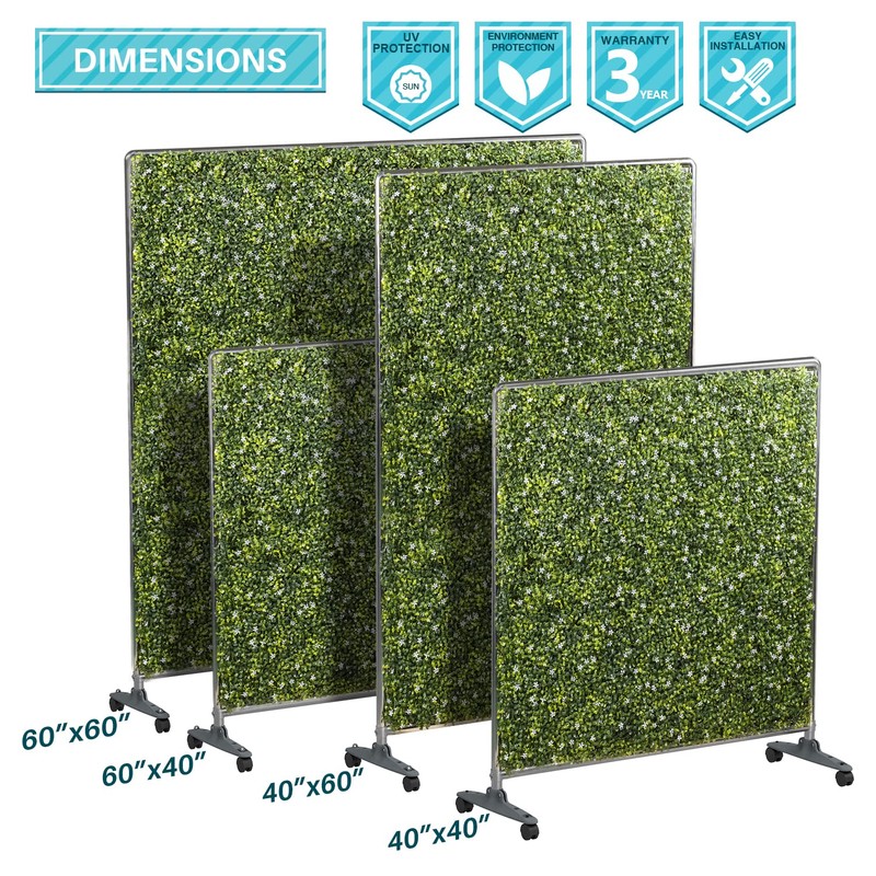 Coarbor 40" H x 40" W Mobile Hedge Room Divider Boxwood Hedge Panels Wall Backdrops Stand Privacy Screen Hedge Stand with Wheels for Room Office Restaurant