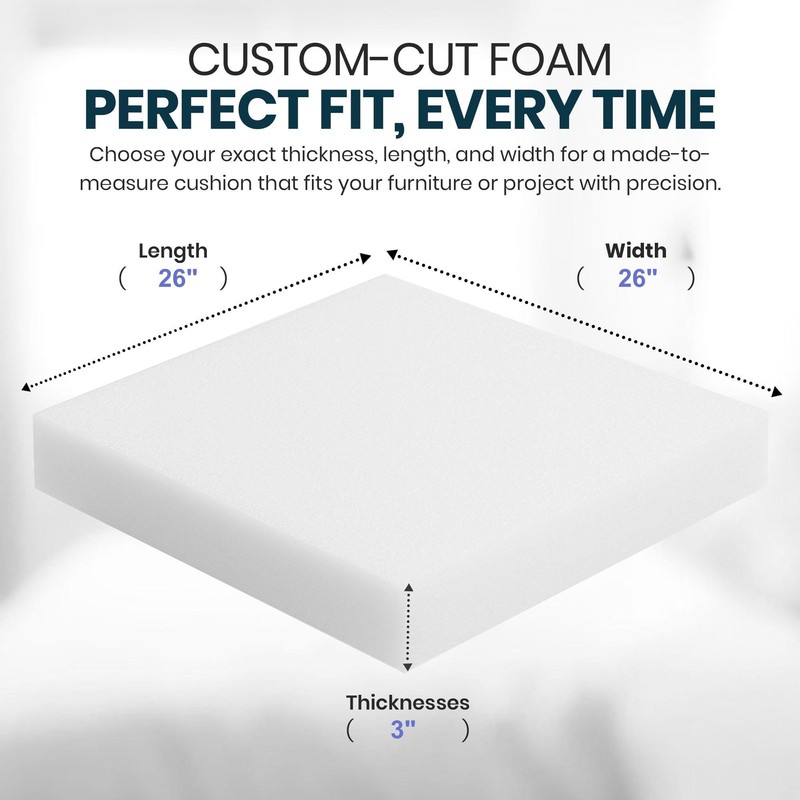 Coaseb 1-Pack of 3" x 26" x 26" High Density Upholstery Foam (Chair Cushion Square Foam for Dining Chairs, Wheelchair Seat Cushion Replacement)