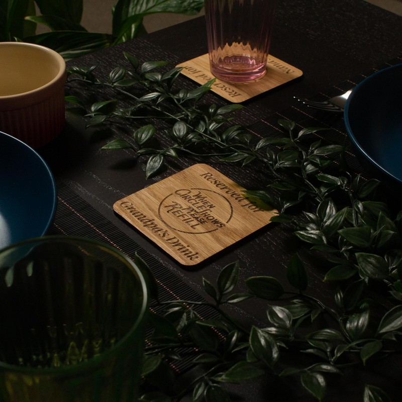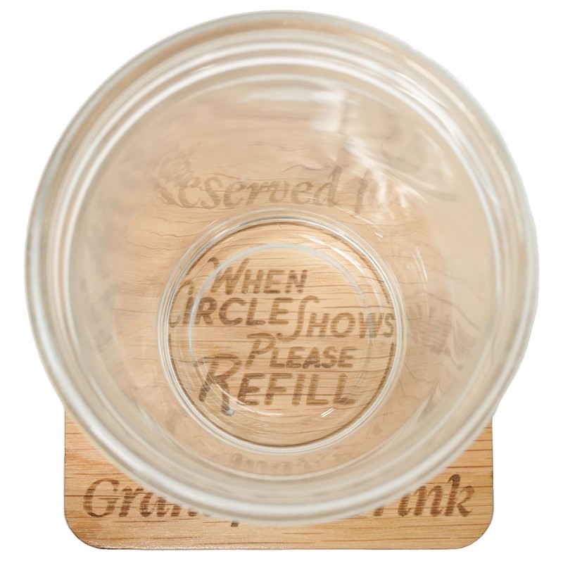 - Engraved Coaster Reads: Reserved for Grandpa’s Drink. When Circle Shows Please Refill.