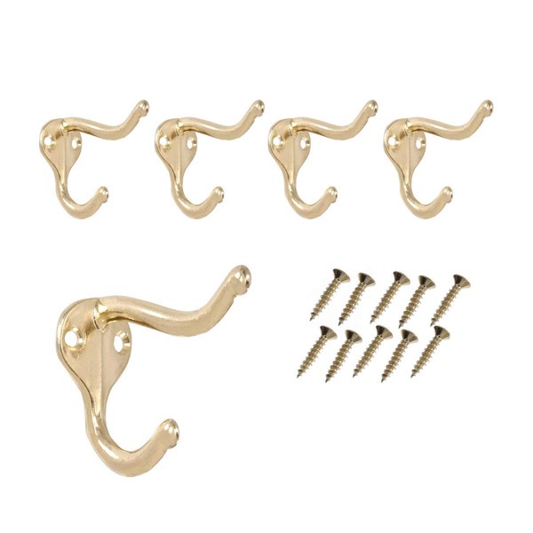 Coat Hat Hook Antique Design with Screws Brass Plated, 5 Pack | HOWTOOL