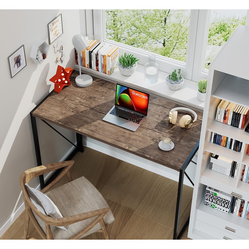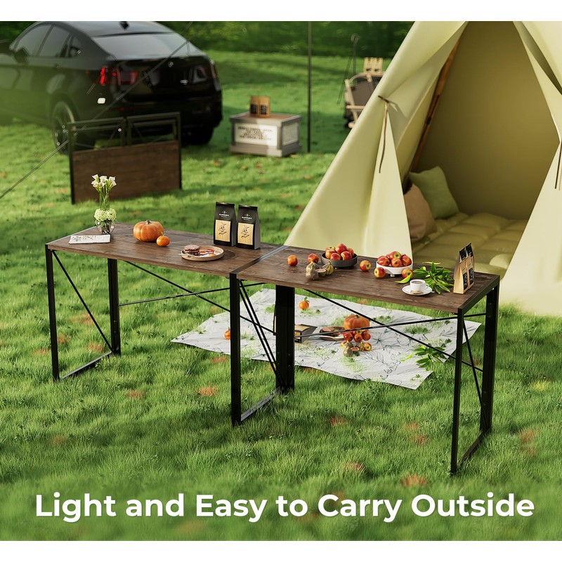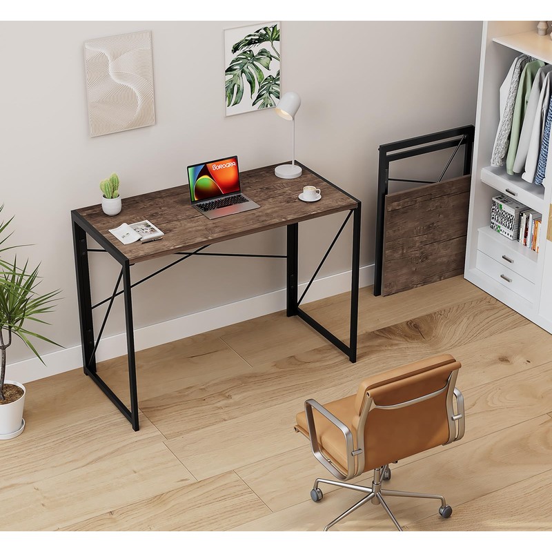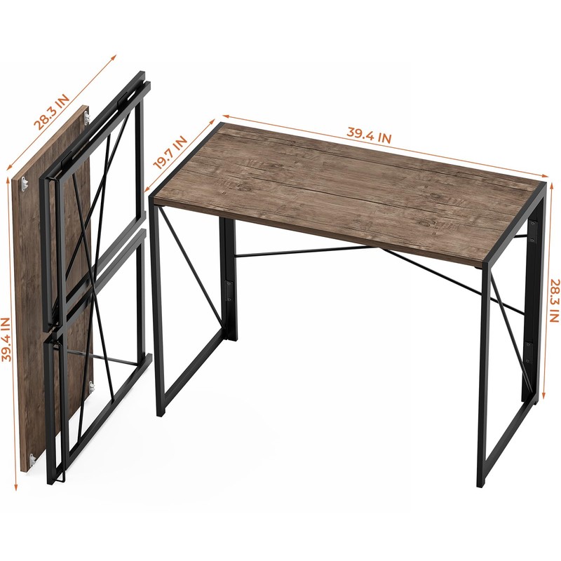 Coavas Folding Desk No Assembly Required, 39.4 inch Writing Computer Desk Space Saving Foldable Table Simple Home Office Desk,Brown