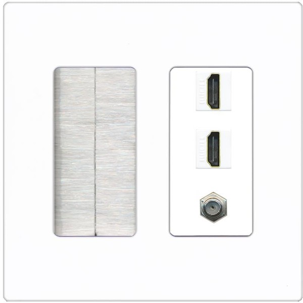 Coax 2 HDMI Wall Plate-Brush Screwless White