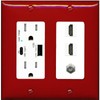 Coax 2 HDMI Wall Plate-USB A+C Charger Red/White