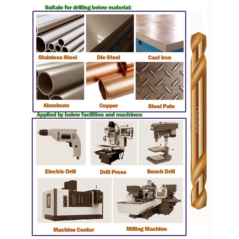 - Application: drill stainless steel, general steel, sheet metal, iron, copper, aluminium, plastic...