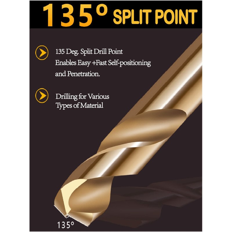 Material: premium HSS cobalt steel retains high hardness and strength for long life drilling.