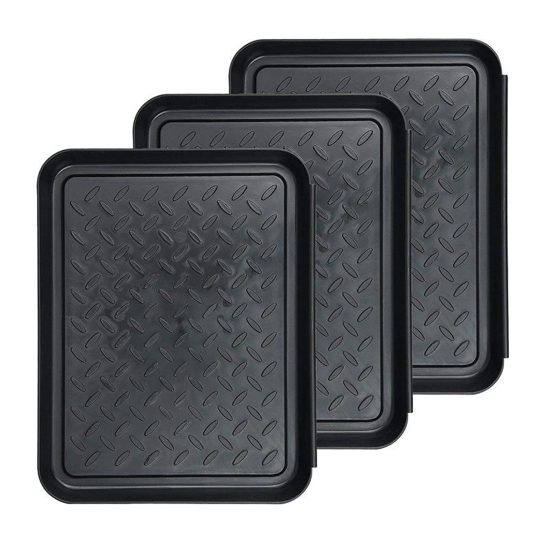 cobalt planet Multi-purpose Interlocking Tray, Tent, Shoe Rack, Shoe Tray, For Cars, Black, For Work (35 x 27 cm), Set of 3