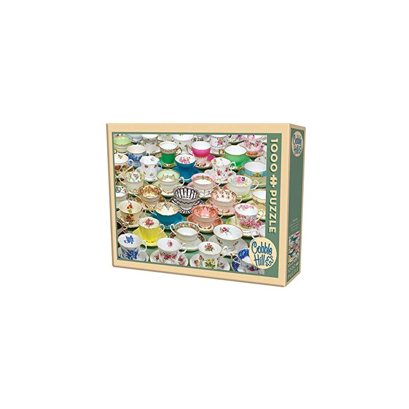 - Tea cups is a 1000 piece jigsaw puzzle by COBBLE HILL featuring a wide assortment of various fancy tea cups and saucers. Measures 26.625 by 19.25 inches when complete.