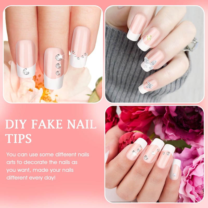 - High Quality Our short ballerina French tip false nails are made of high quality ABS material, shiny surface, malleable, natural and pre-shaped. Comfortable and no stinging The most suitable radian measure and thickness for women have been selected, are more comfortable to wear and the effect is more natural and suitable for long-term wear.