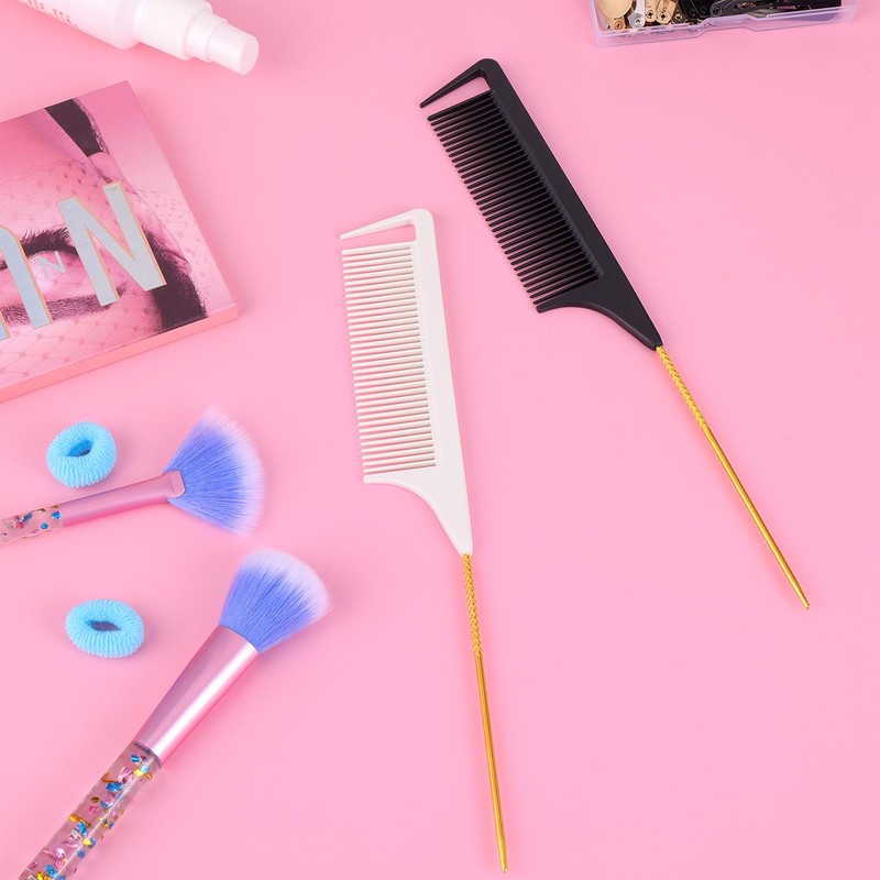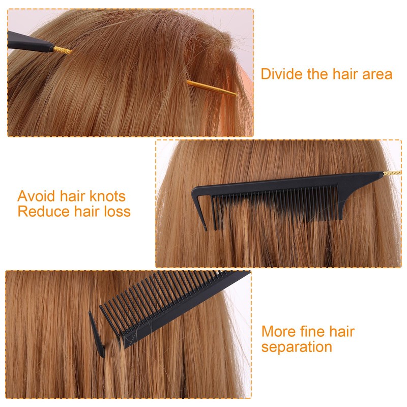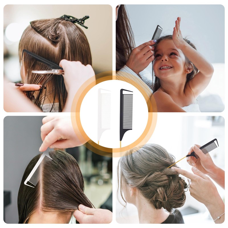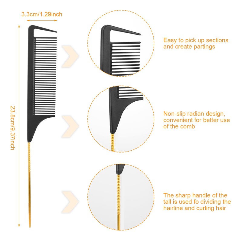 - 【Stainless Steel Pin Handle】 This rat tail comb features a premium stainless steel needle handle, ensuring long-lasting durability. It is designed to effortlessly separate and detangle hair, while its anti-static properties make it perfect for achieving flawless salon-quality styles. The smooth finish also makes cleaning a breeze, ensuring clean at all times.