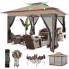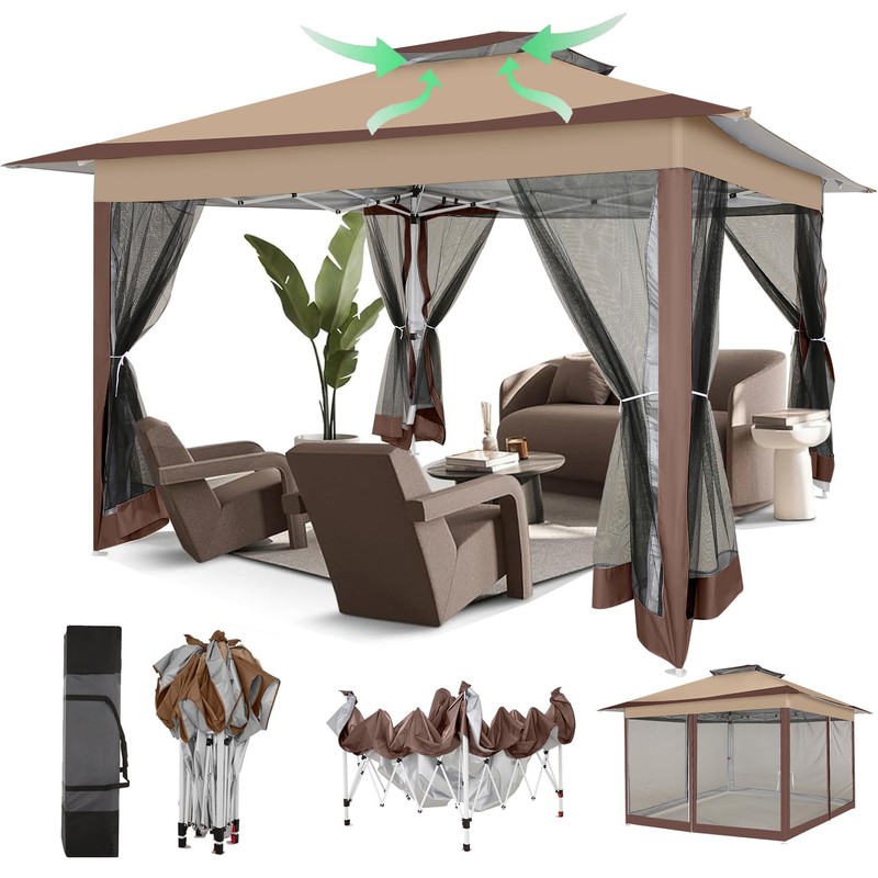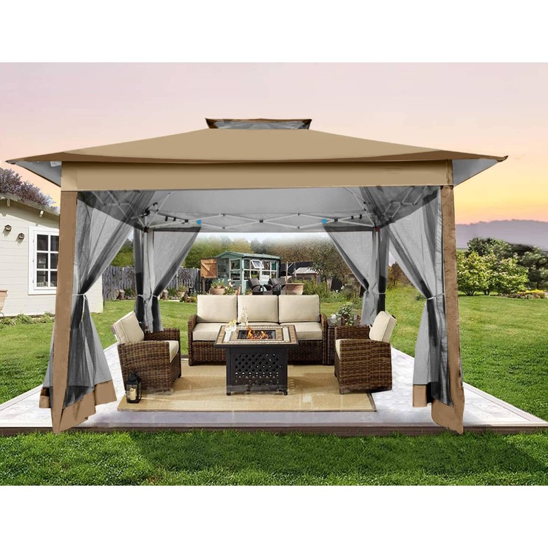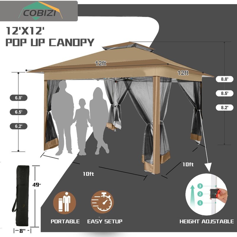 COBIZI COBIZI 12x12 Pop Up Gazebo On Clearance Canopy Tent- Upgrade Metal Outdoor Canopy Waterproof - Portable Gazebo with Mosquito Nettings, 4 Ropes 8 Stakes and Carry Bag for Patio Garden(Coffee)