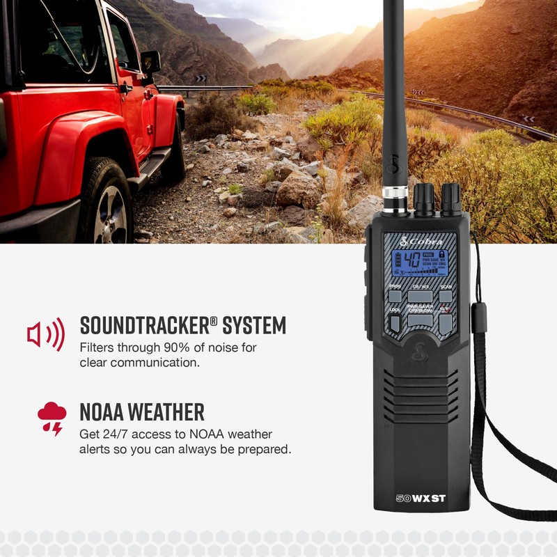Cobra HH50WXST Handheld CB Radio - Emergency Radio with Access to Full 40 Channels and NOAA Alerts, Earphone Jack, 4 Watt Power Output, Noise Reduction and Dual Channel Monitoring, Black