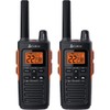 Cobra RX680 Walkie Talkies (2-Pack) - Rugged & Splashproof Two Way Radios Long Range, IP54 Water Resistant Design, 60 Pre-Programmed Channels, Weather Alerts, Included Charging Dock (Black/Orange)