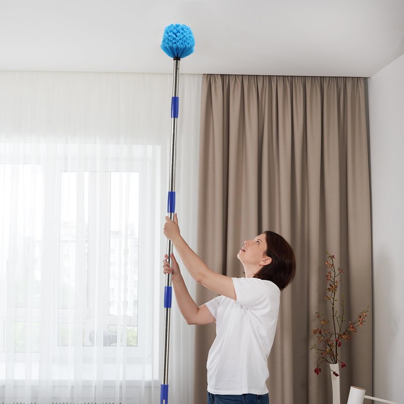 - MULTIPURPOSE: This long handled duster is perfect for cleaning cobwebs and dust from eaves, porches, walls, blinds, windows, ceiling fans, garages, pool cages and balconies.