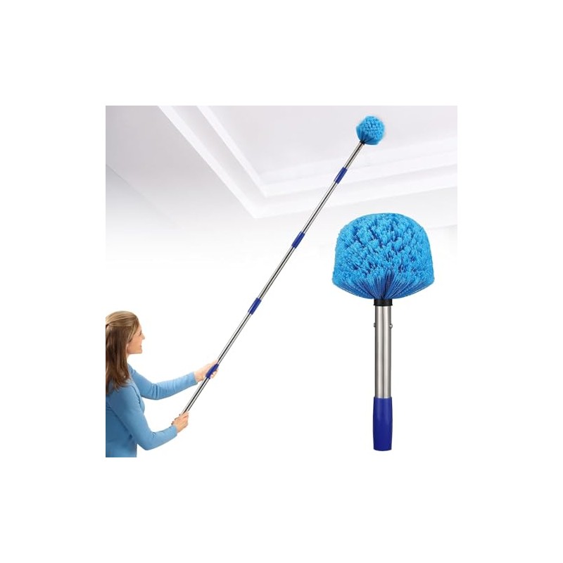 Long Duster for High Ceilings, Walls, Medium Stiff Bristles Cobweb Brush with Lightweight Stainless Steel Pole for Outdoor Indoor Cleaning