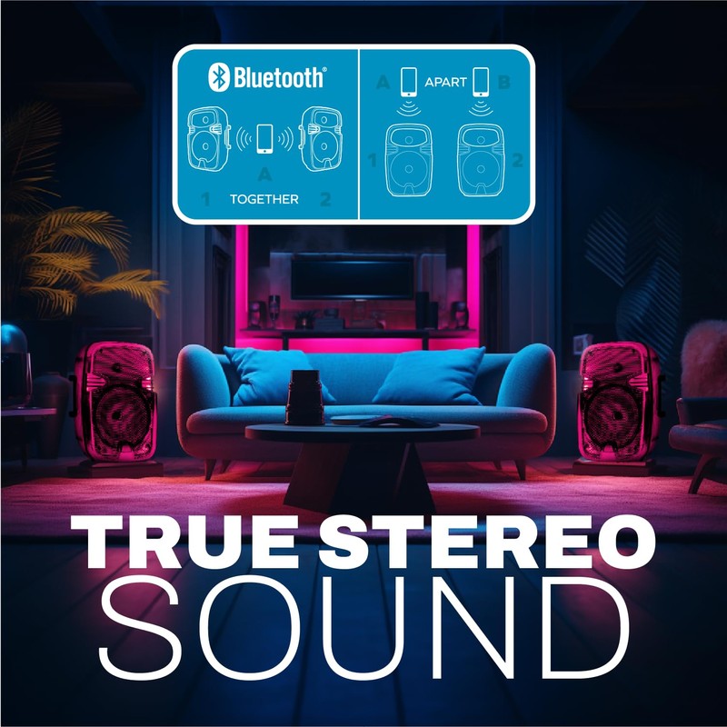 • Pair Multiple Speakers: Pair two of the Coby Bluetooth Party Speakers to give your space even louder, more dynamic sound. Great for outdoor events and big parties, pairing two speakers produce enough sound to engulf a medium sized venue or large outdoor gathering.