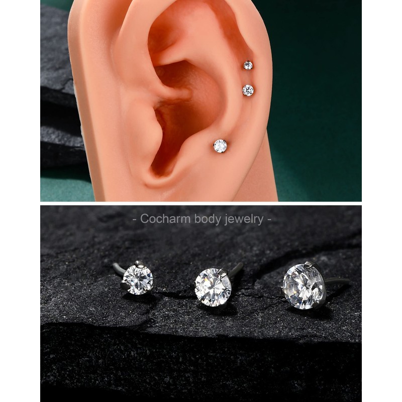 - 【Value Pack】One top(3mm CZ) with Three Sizes Bottom. 4Pcs Sparkling G23 Titanium Tragus Earrings Stud Flat Back Conch Earrings Stud for 20g Piercing.