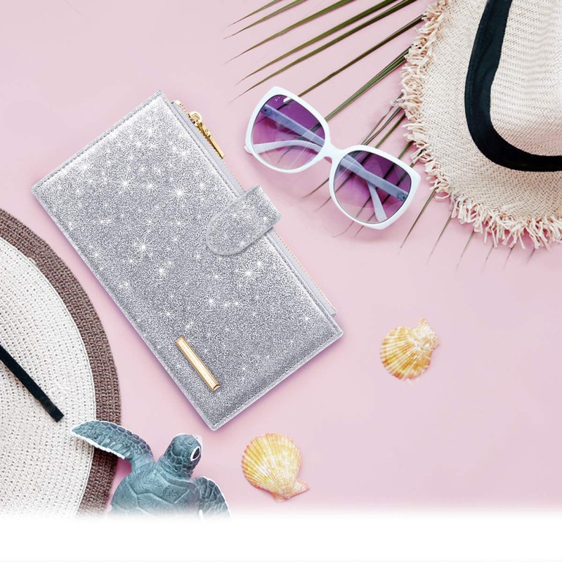 • ★【Smooth & Soft Material】:Our silver glitter wallet is designed with high quality PU vegan leather & dust-proof cover & simple polybag packing. The glitter part will never fade away, provides you an amazing touch feeling. The sparkly womens wallet is a perfect gift for women, lady, girls or anyone who loves it; Suitable for Valentine's day, birthday, Mother's day, Christmas and other holiday gifts.