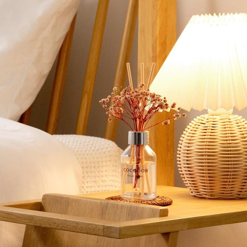 • Reed Diffuser set – Includes 3.4oz of essential oil with elegant bottle, Preserved Baby's Breath flower and 5 Ivory fiber reed sticks