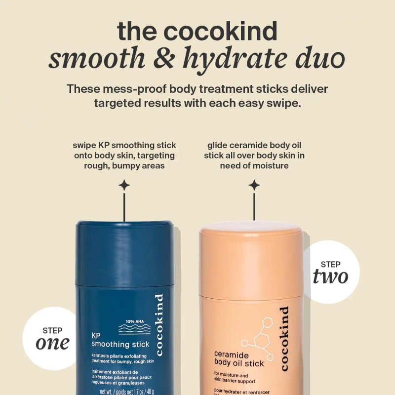 KERATOSIS PILORIS SMOOTHING STICK: Esta barra de tratamiento KP a prueba de desorden con 10% de AHA exfolia suavemente para suavizar la textura rugosa y rugosa y reducir el aspecto de decoloración asociado con la queratosis pilaris. El innovador aplicador y el acabado ligero y no pegajoso hacen que sea fácil apuntar a golpes KP, pelos encarnados y piel opaca y escamosa en casa o sobre la marcha.; Ingredientes clave: