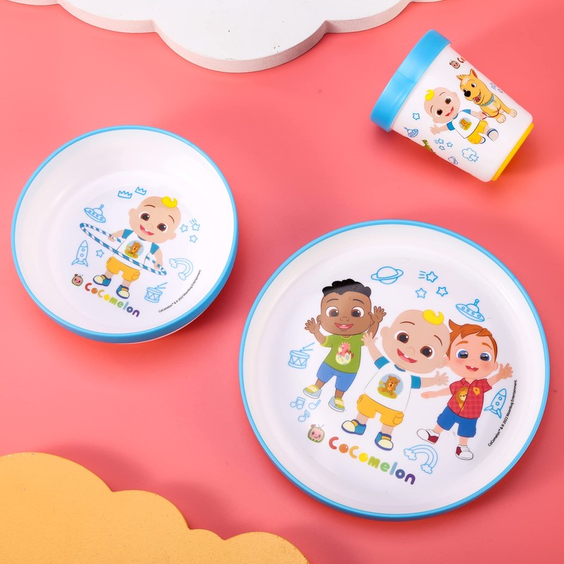 Cocomelon 3pcs Bicolor Premium Kids Dinner Tableware Set Plate, Bowl & Tumbler, BPA Free