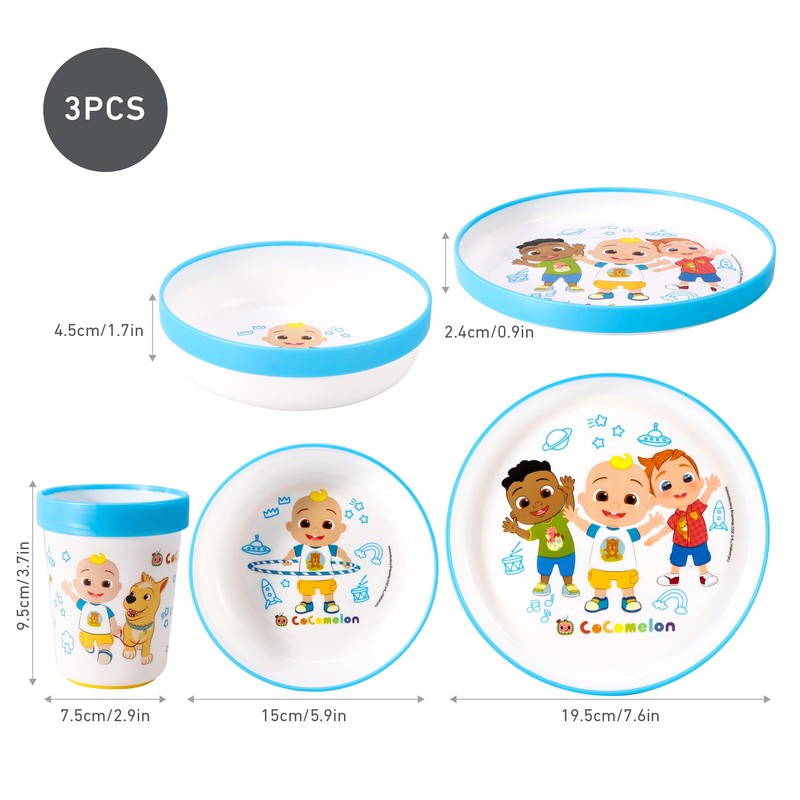 Cocomelon 3pcs Bicolor Premium Kids Dinner Tableware Set Plate, Bowl & Tumble...