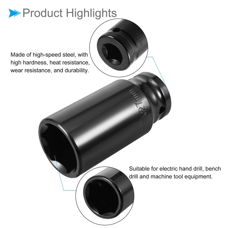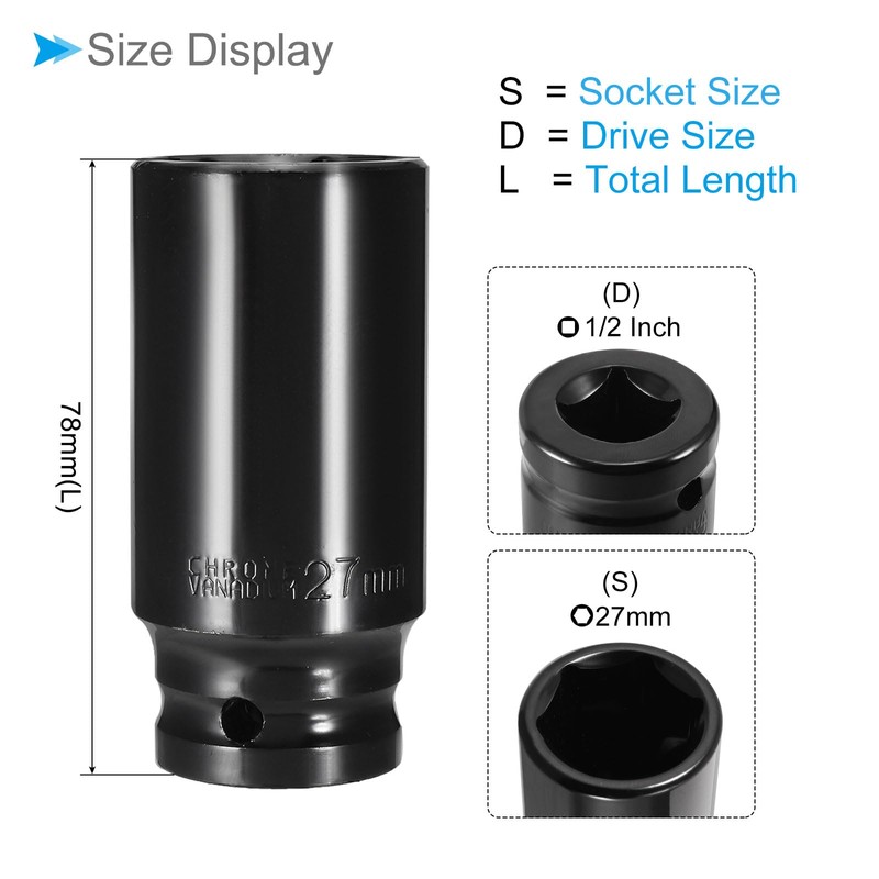 CoCud Deep Impact Sockets, 1/2" Drive 27mm Socket 6 Point, Cr-V Heat-Treated Black - (Applications: for DIY Hand Making)