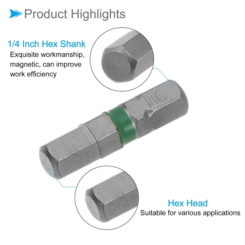 - ★ Hex Screwdriver Bits Size --- Bit Type: H6, Shank Size: 1/4-inch, Total Length: 25mm / 0.98-inch. You will receive 8pcs hex screwdriver bits in one package,