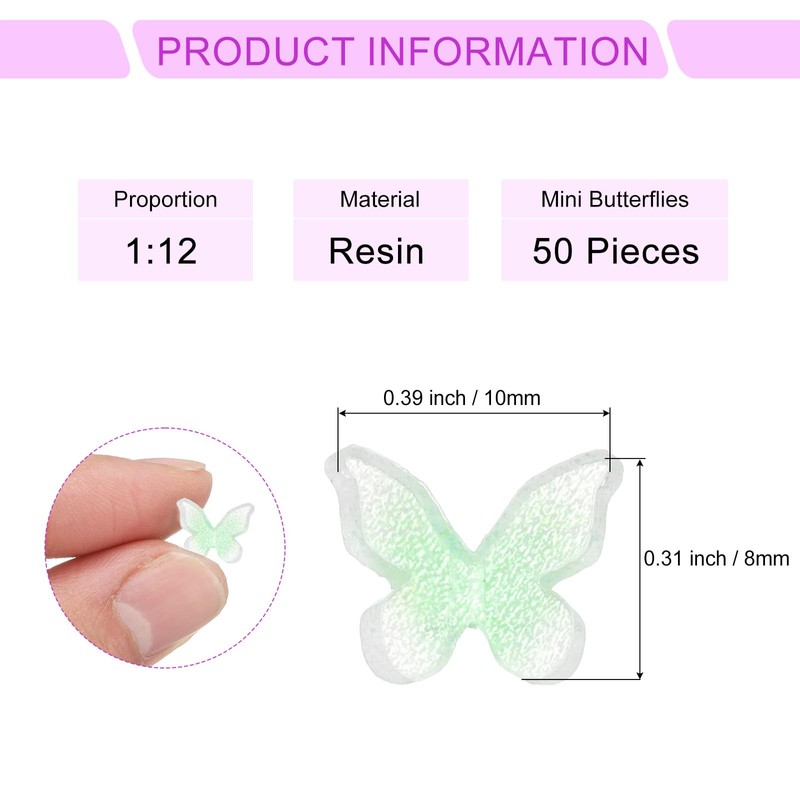 CoCud Mini Resin Butterflies, 0.31" Length, Resin Miniature Dollhouse Accessories Clear Green - (Applications: for Crafts Nail Art Fairy Micro Landscaping Ornament) 50-Pieces