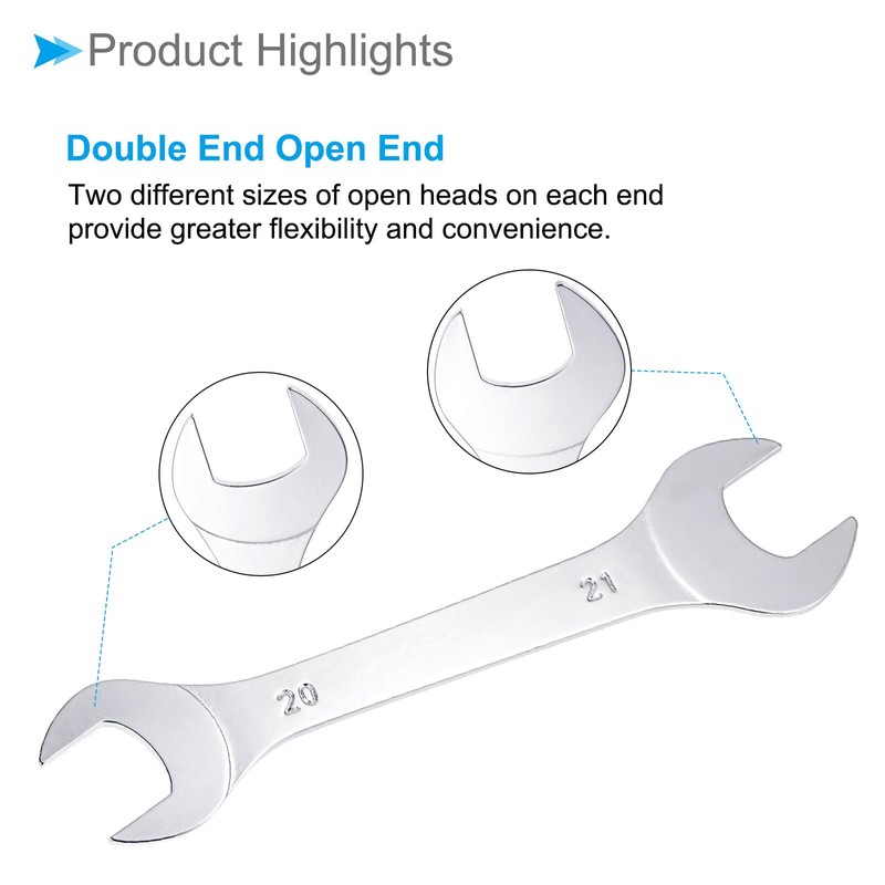 • ★ Double-Ended End --- The double-ended open-end wrench features two different sizes of open-end heads at each end, providing greater flexibility and convenience. To use, simply select the appropriate size for your task and fit the open end over the nut or bolt. Apply force by turning the wrench in a clockwise or counterclockwise direction to tighten or loosen respectively.