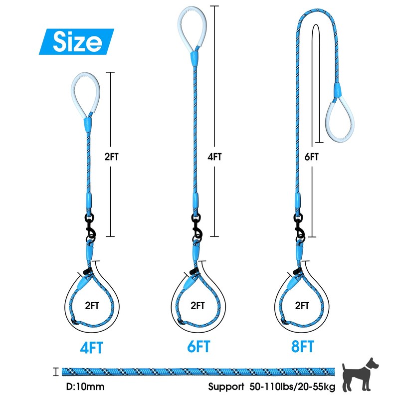 • Multiple Length Options: This dog leash series offers three length options to meet different walking needs:
