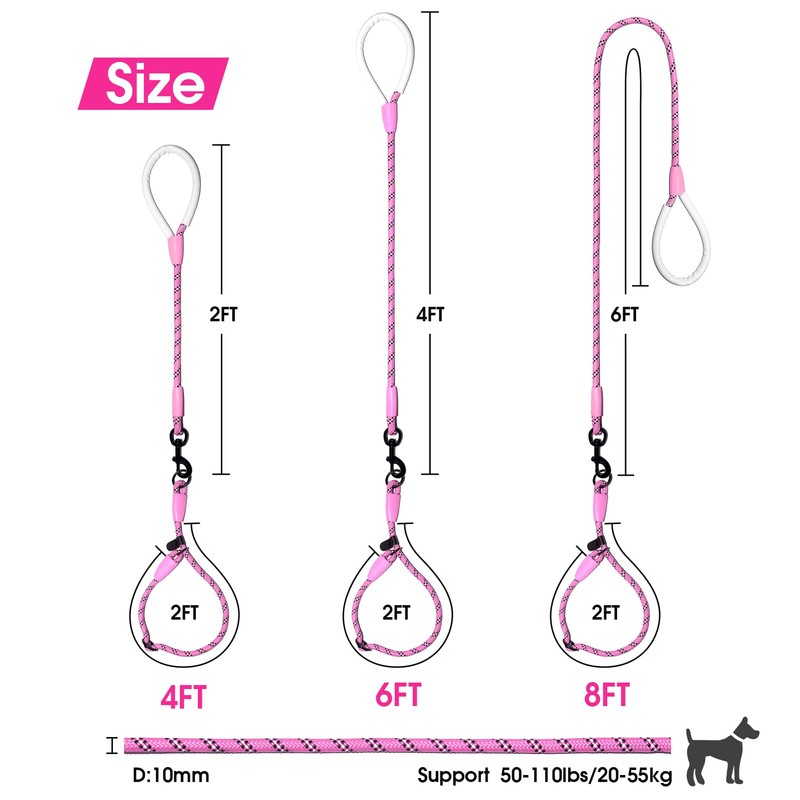 - Multiple Length Options: This dog leash series offers three length options to meet different walking needs: