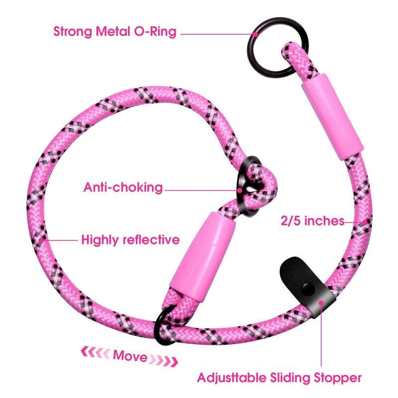 - 【Strong and Lightweight】: This sturdy premium slip lead dog leash is made of high-strength nylon rope and ultra-durable metal rings. The 2/5” thick rope ensures adequate pulling power while maintaining a lightweight design.