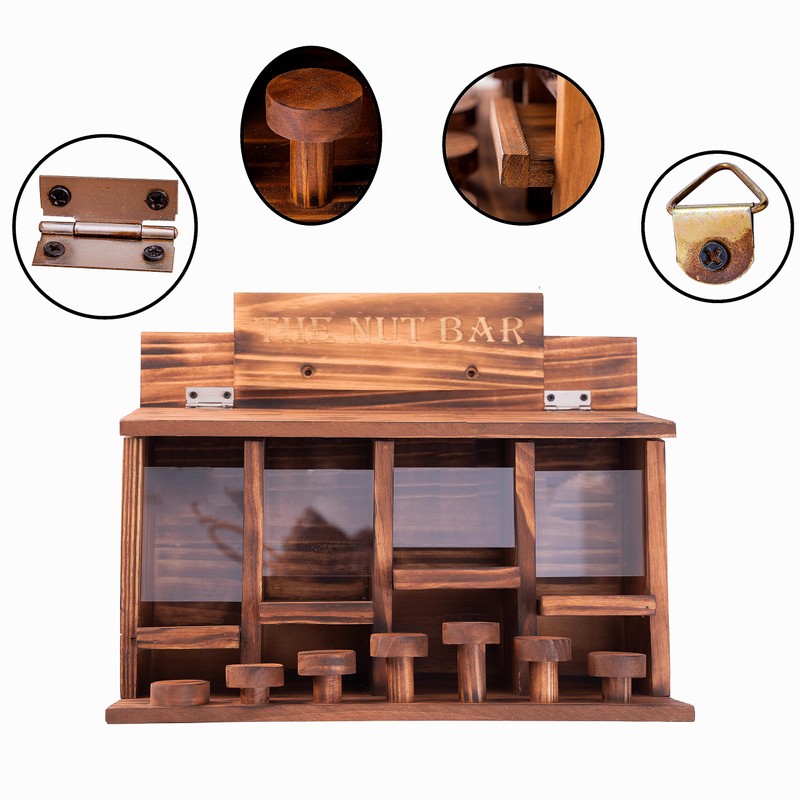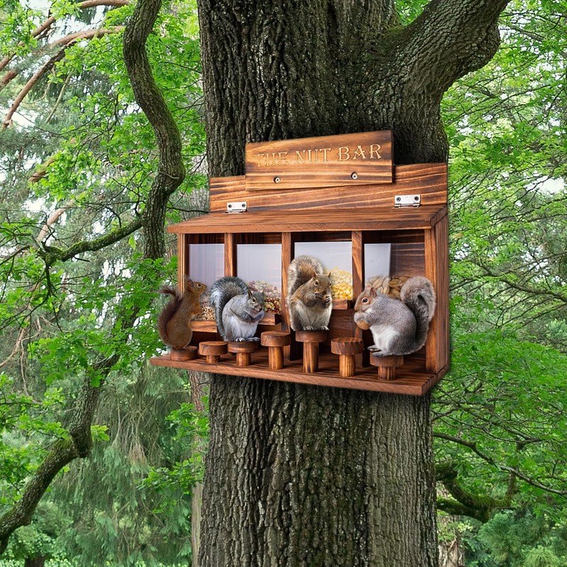 - 7 Bar Stools with Different Levels: It's amazing to watch the squirrels dance on their stool. The squirrels will be delighted with the bar stools designed with different heights, not only coming to enjoy the nuts but also dancing on the squirrel feeder.