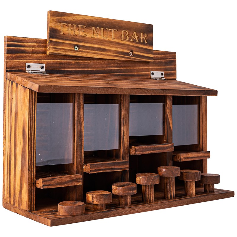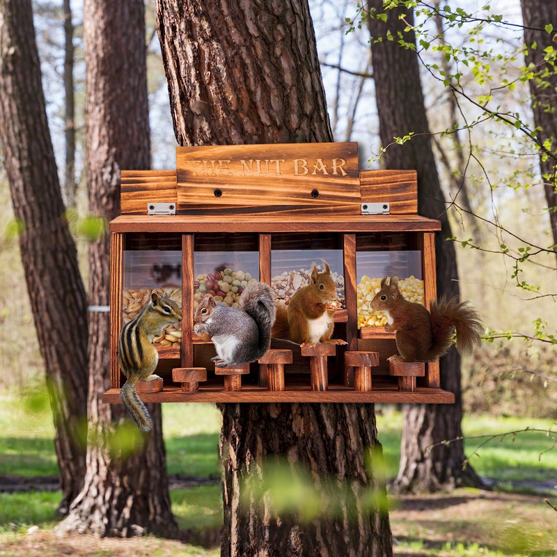 - 4 Separate Seed Compartments: With 4 spacious seed compartments, you are free to store a variety of seeds and grains, with a variety of seed sources that make squirrels unable to forget their feeder counter.