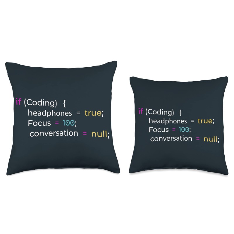 Coding Headphones True Focus 100 Conversation Null If Coding Headphones True Focus 100 Conversation Throw Pillow, 18x18, Multicolor