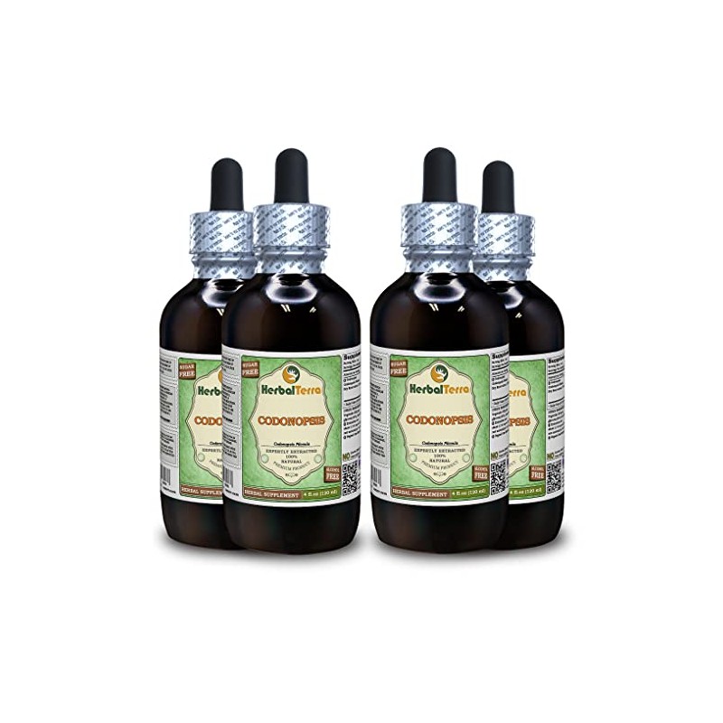 Codonopsis (Codonopsis Pilosula) Glycerite, Organic Dried Root Alcohol-Free Liquid Extract (Brand Name: HerbalTerra, Proudly Made in USA) 4x4 fl.oz (4x120 ml)