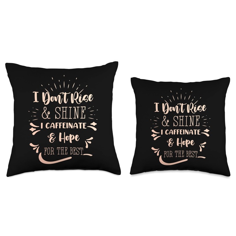 Coffee Cappuccino Latte Macchiato Espresso Gift Funny Joke Don´t Shine and Rise Caffeinate Hope for The Best Throw Pillow, 18x18, Multicolor