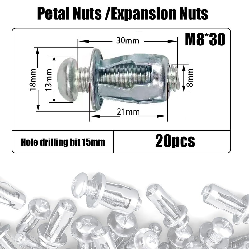 4. (M8*30)-20pcs Petal Expansion Nuts (with screws)