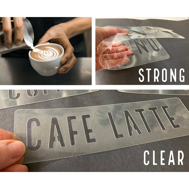 - COFFEE MENU STENCIL KIT - Easily paint your own professional looking coffee signs. It's as easy as securing the template to the sign surface and applying your choice of acrylic, milk or chalk paint. Use your favorite colors and make it your own!