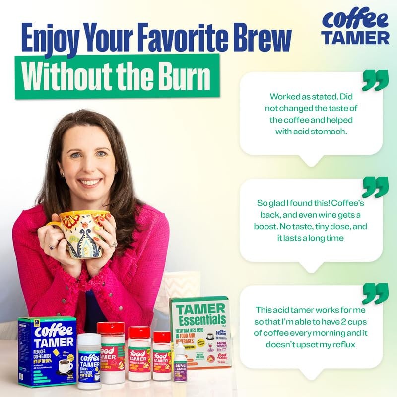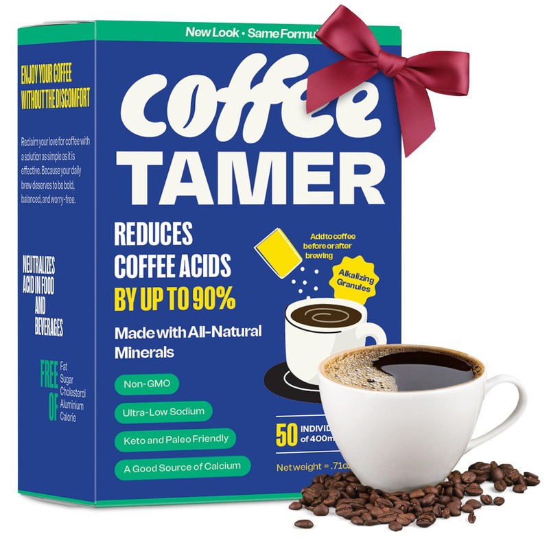 Coffee Tamer Acid Reducer – 50 Packets – Transforms Regular Coffee to Low Acid – All-Natural Minerals – Reduces Acidity by 90% – Keto Friendly, Sugar Free, Non-GMO