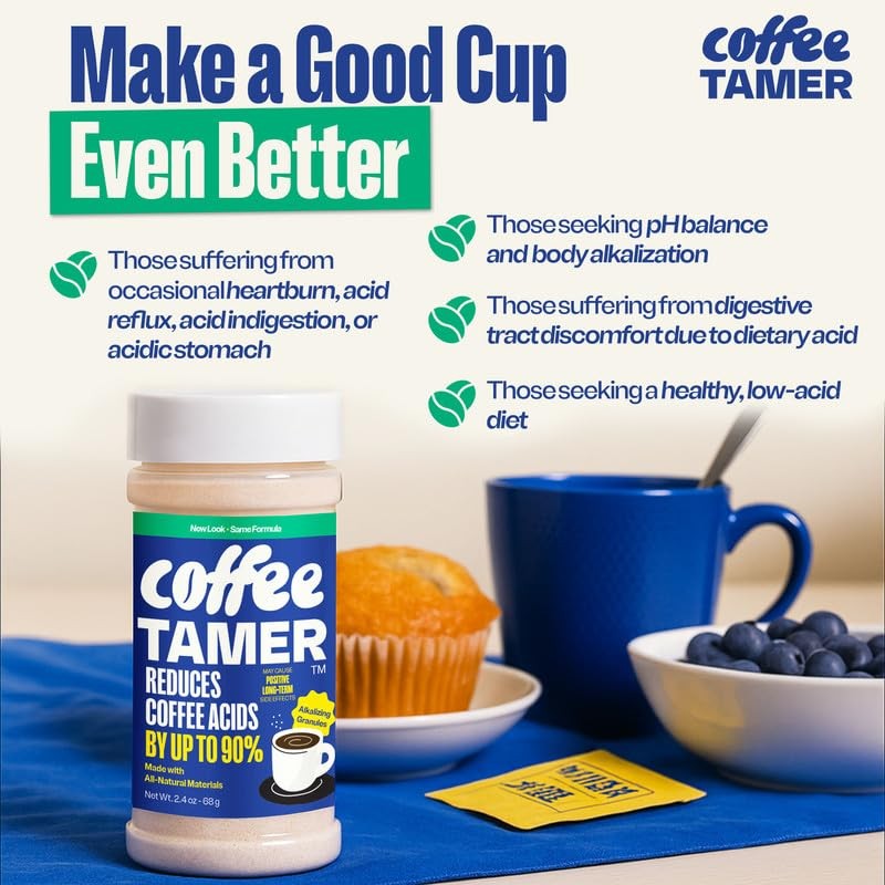 - Convenient to Use: Coffee Tamer simplifies your coffee routine. Just pour the granules into your coffee, give it a stir, and enjoy. No complicated steps or extra equipment neededjust effortless acid reduction for a smoother, more enjoyable cup of coffee.