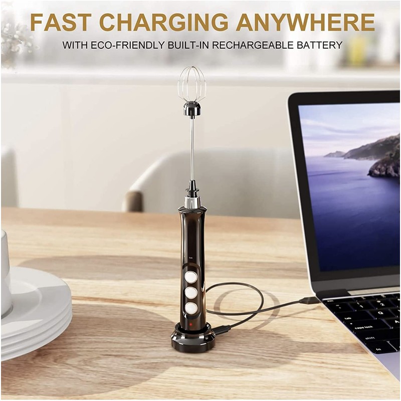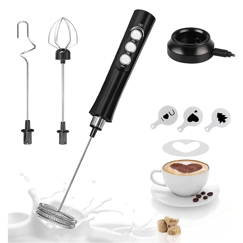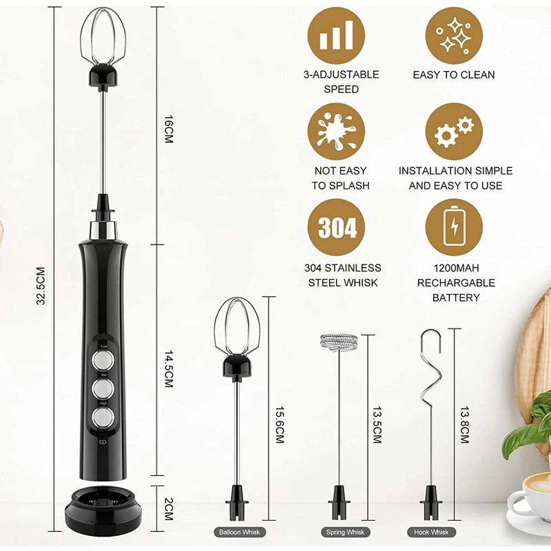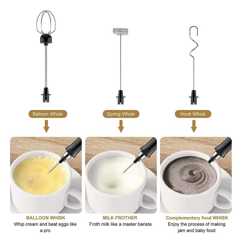 Coffee Tea Chai Latte Foam Maker Mini Cream Frother Handheld Black Duo Whisk Set Egg Mixer and Milk Frother