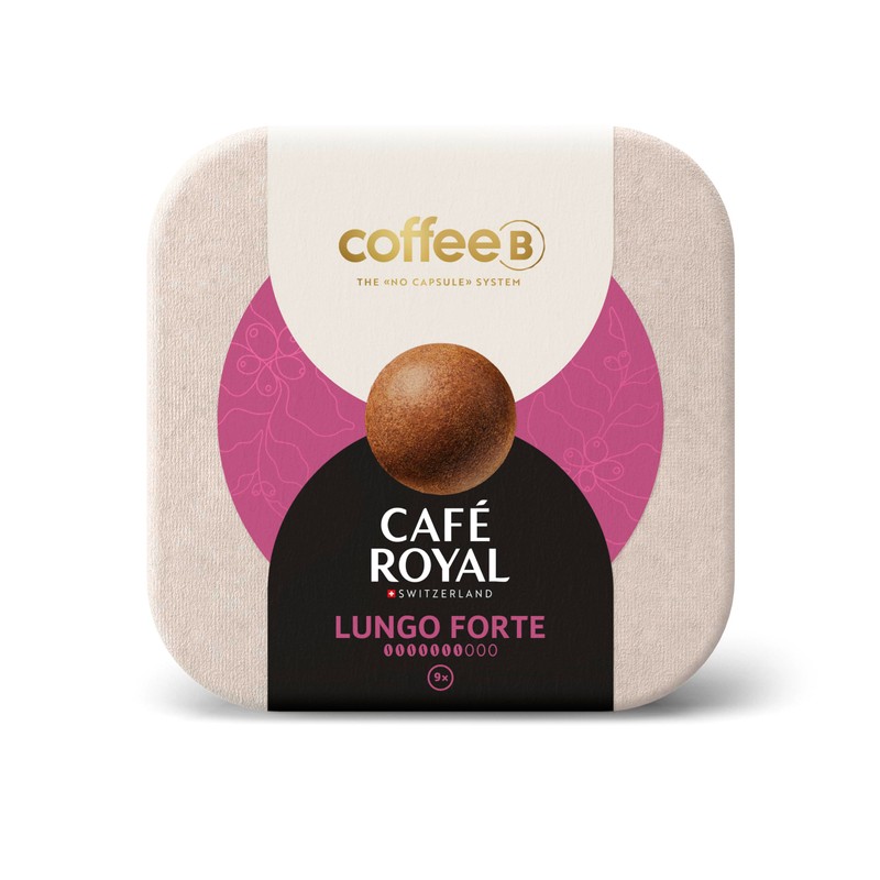 CoffeeB Café Royal Lungo Forte - Compostable Coffee Balls, Pack of 9, Compatible with CoffeeB Machines, with Notes of Cocoa, Caramel and Pepper