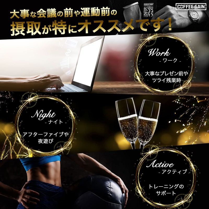 COFFEEGAIN BLACK 12袋 サプリメント コーヒー ゲイン カフェイン エナジー サプリ 無添加 シュガーレス 次世代