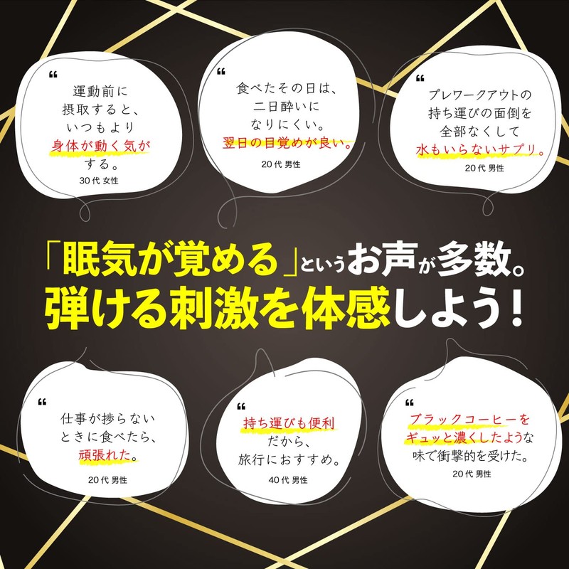 - 【刺激を求める人に!】 味気のないサプリメントではなく、コーヒーの豊かな香りと官能的な苦味を体感してください。クセになる美味しさとみなぎるパワーを実感していただける仕上がりになっています。