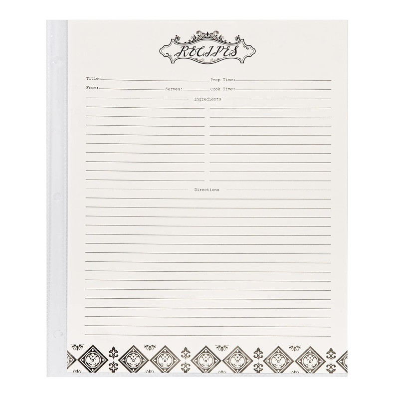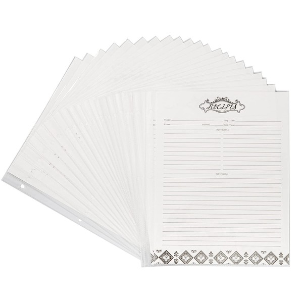 COFICE 50 Pack Recipe Paper for 8.5x11 Full Page 3 Ring Book Binder with Plastic Protectors (Tableware)