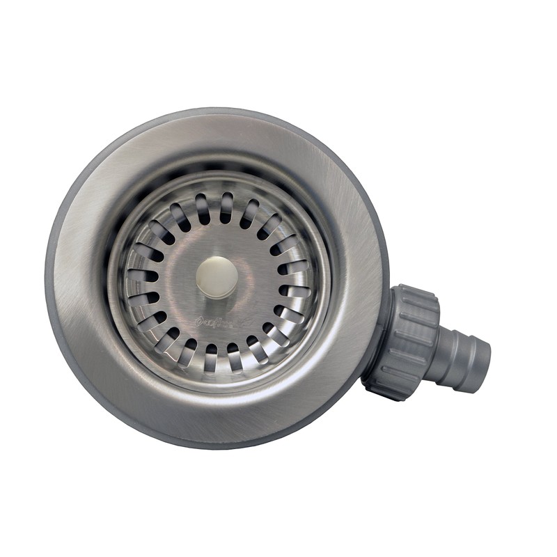- Branch in sink strainer connects to a 7/8" diswasher drain hose adapter.