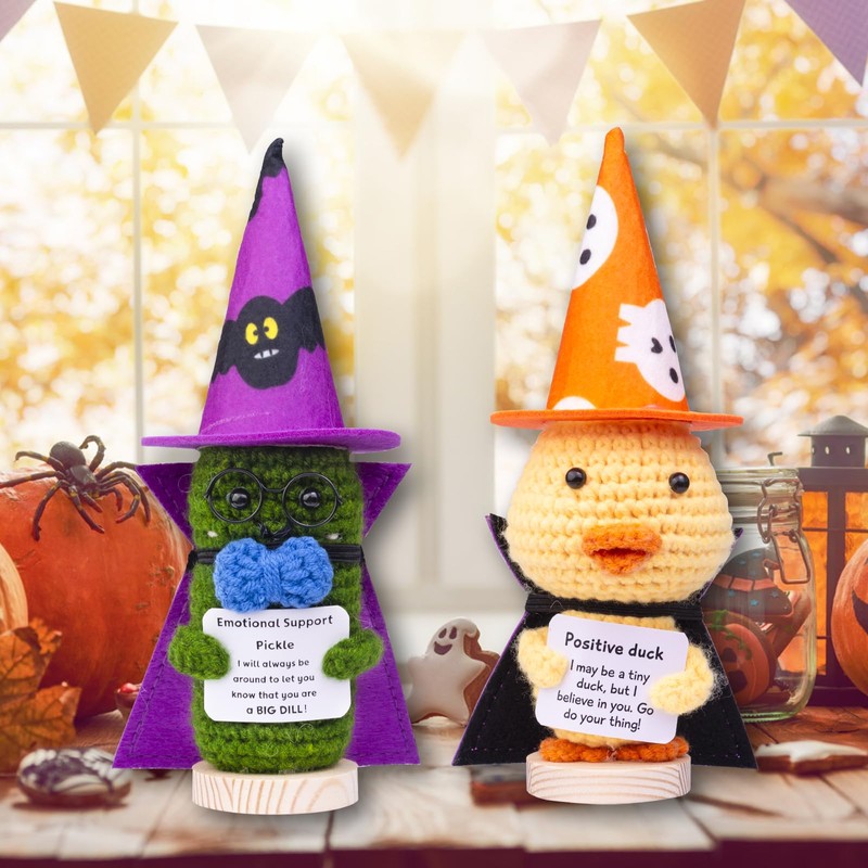 - 👻 The perfect motivational Halloween gift: Knitted wool cucumber with a warm card that will make the faces of those you care about smile. This positive cucumber can be used as a Halloween gift, birthday gift, Christmas gift, Thanksgiving gift, party gift, graduation gift, housewarming gift, etc. You can decorate anywhere to create a happy and positive atmosphere.