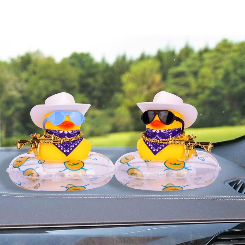 CoFuBcad West Cowboy Duck Decoración de tablero de instrumentos de pato amarillo Accesorios para salpicadero de coche con mini sombrero de vaquero, bufanda, collar de tubo de natación, anteojos de sol y accesorio fresco (C27)