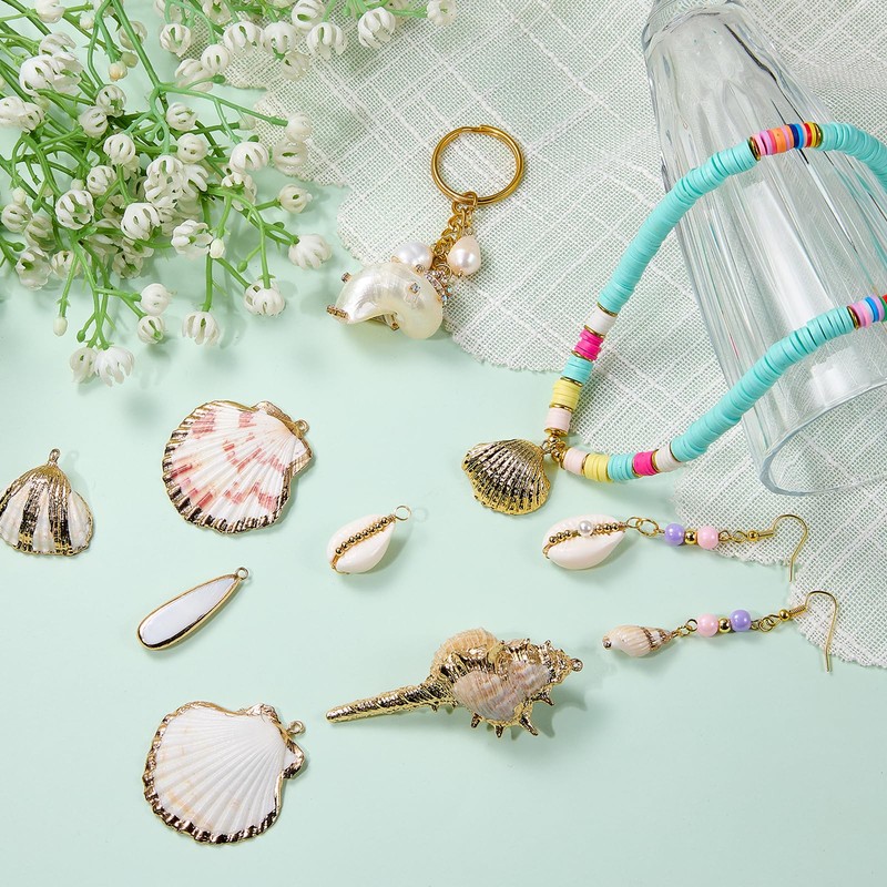 COGCHARGER 20 Pieces Mixed Natural White Beach Ocean Seashells Charms Gold Plated Conch Shell Pendants for Jewelry Making Earring Necklace Bracelet